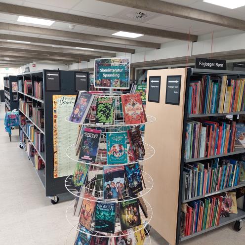 Biblioteket ligger på 1. sal i Langeskov Idrætscenter. Når du kommer ind ad hovedindgangen kan du gå til venstre for at komme til trappen op til biblioteket, eller til højre for at tage elevatoren.